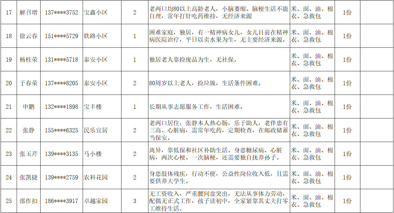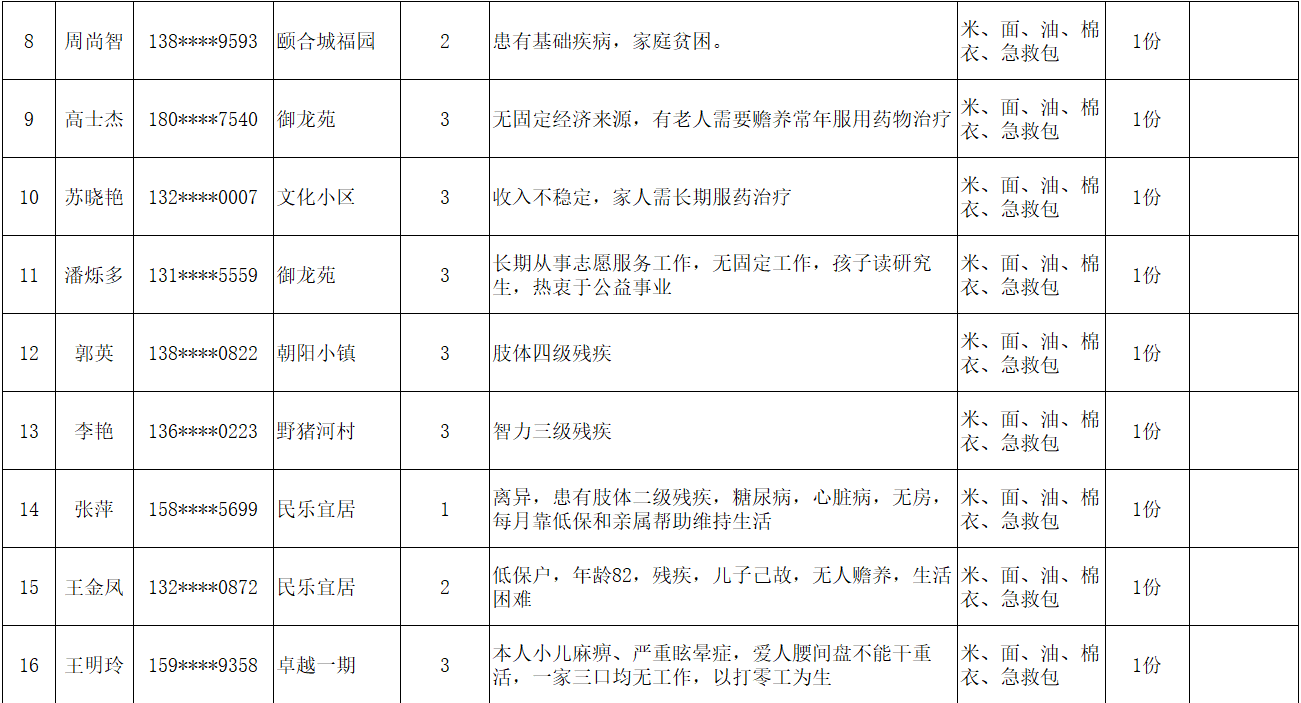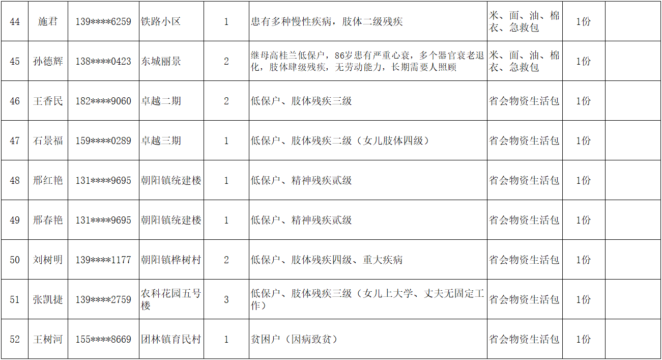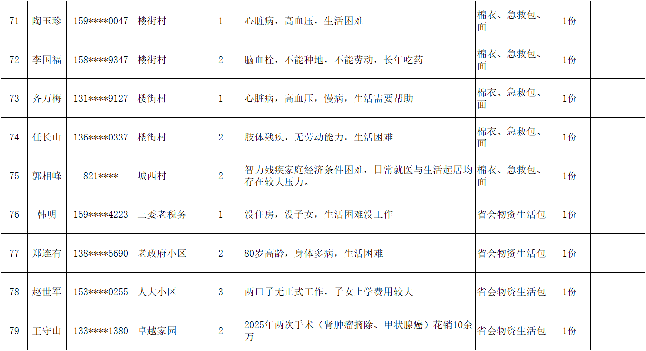 为弘扬“人道、博爱、奉献”的红十字精神,充分发挥红十字会作为党和政府在人道领域的助手和联系群众的桥梁纽带作用,根据总会和省红十字会《吉林省红十字会2026年度“红十字博爱送万家”活动方案的通知》文件精神,辉南县红十字会在2026年春节前夕组织开展“博爱送万家”活动。经研究同意,拟对85名困难群众给予人道救助。现将救助人员基本情况和发放物资情况予以公示。